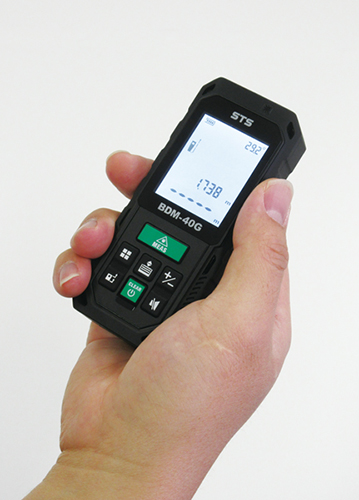 - STS グリーンレーザー距離計 BDM-40Gは巻尺を使わずに手軽に距離を測定できます。