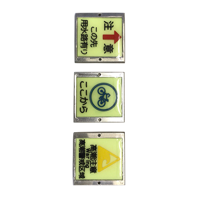 〇強度面も蓄光プレートを保護するため、アルミプレートと樹脂で強化しています。