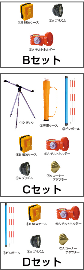 NEWケース、プリズム、チルトホルダー、コーナーアダプター、測点スタンド、