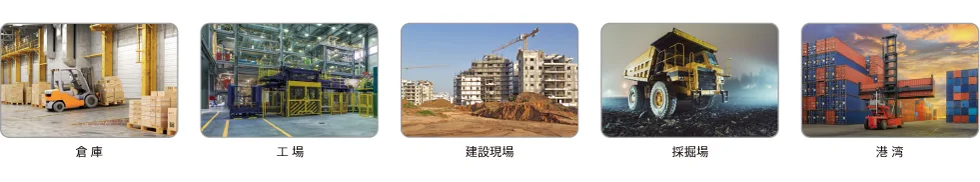 後付けで設置できるシンプルな機器で構成されているため、様々な産業車両に対応しています。(フォークリフト、ショベルカー、ホイールローダー、トラクター etc )